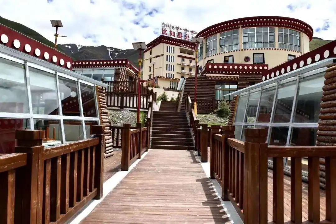 公主溫泉康養(yǎng)中心,是唐蕃古道文化旅游景區(qū)的主要住宿設(shè)施,酒店借鑒傳統(tǒng)的藏式風(fēng)格建筑,融入了現(xiàn)代江南水鄉(xiāng)的建筑風(fēng)格。酒店建筑面積3222.5㎡,樓高5層,建筑高度17.5m,客房共有45間,床位70張,餐廳可同時(shí)容納300人就餐,停車場(chǎng)可容納60輛左右的車位。