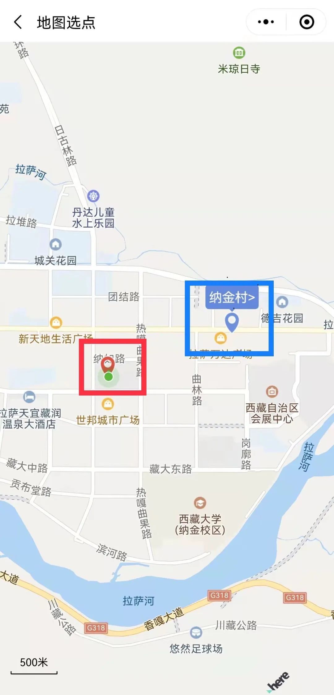 第三步:紅色位置,為搜索地點(diǎn)自行輸入地址定位點(diǎn);藍(lán)色位置,為你所定位地點(diǎn)的管控街道(鄉(xiāng))和社區(qū)(村),請點(diǎn)擊。
