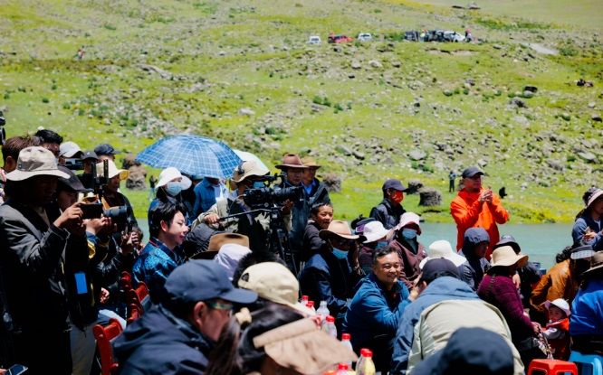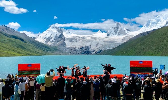 天高地闊,白云祥和,雪山巍然;清風(fēng)徐徐,青草依依,湖水湛藍(lán)。薩普雪山融水匯聚成一條清澈的河,從眼前激流直下。7月15日上午,一場別具特色的文化旅游賽事活動在這里拉開序幕。一場慷慨激昂、內(nèi)容豐富的主題推介演講,一首首悠揚高亢、直擊心靈的民族歌曲,一幕幕輕盈靈動、鏗鏘有力的特色舞姿,引得現(xiàn)場數(shù)百名觀眾一陣陣掌聲雷動和直播間數(shù)十萬用戶點贊、好評不斷,成功向區(qū)內(nèi)外推介了比如縣得天獨厚的旅游資源和特產(chǎn)資源,為旅游事業(yè)和經(jīng)濟(jì)社會高質(zhì)量夯實了宣傳工作基礎(chǔ)。