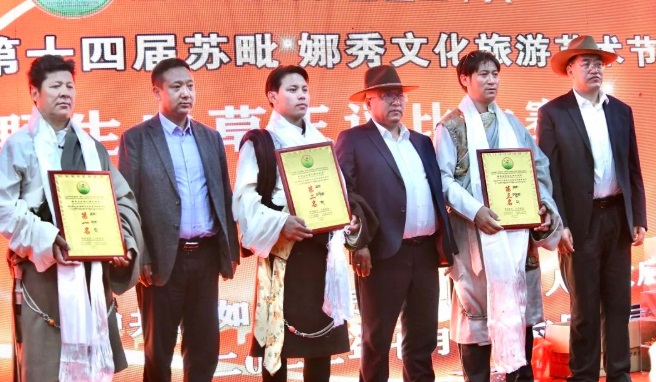 經(jīng)過評比,茶曲鄉(xiāng)茶久的蟲草以整體質(zhì)量最佳獲得蟲草鮮草單斤第一名,第二名和第三名則是來自茶曲鄉(xiāng)的曲嘎和夏曲鎮(zhèn)的羅杰;獲得蟲草陳草單斤第一名的是來自達(dá)塘鄉(xiāng)的貢嘎,達(dá)塘鄉(xiāng)的索朗達(dá)杰榮獲第二名,茶曲鄉(xiāng)的措白為第三名,出席領(lǐng)導(dǎo)為獲獎選手頒獎。