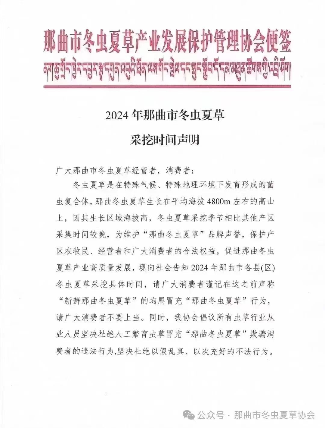 2024年那曲市冬蟲(chóng)夏草采挖時(shí)間聲明