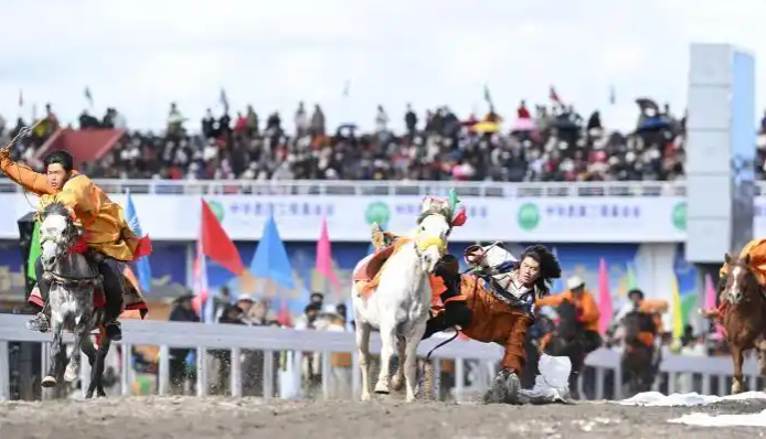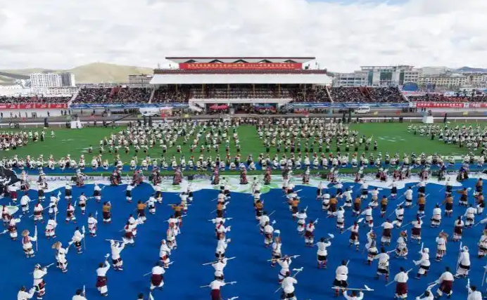 60年來(lái),在黨中央親切關(guān)懷、西藏自治區(qū)黨委堅(jiān)強(qiáng)領(lǐng)導(dǎo)及對(duì)口支援省市和企業(yè)無(wú)私援助下,那曲各項(xiàng)事業(yè)取得全方位進(jìn)步與歷史性成就。開(kāi)幕式文藝演出以“馬”文化為核心,分三大篇章展開(kāi),四川、青海等地馬術(shù)表演隊(duì)與本地隊(duì)伍共展精湛技藝;千人共舞《禮贊甲子》、器樂(lè)合奏《風(fēng)從浙江來(lái)·樂(lè)在那曲揚(yáng)》等節(jié)目,生動(dòng)呈現(xiàn)西藏自治區(qū)成立60年輝煌成就與對(duì)口支援成果。